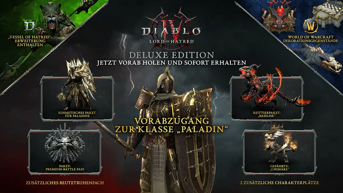 Wenn ihr die Deluxe Edition von Diablo IV: Lord of Hatred im Vorverkauf erwerbt, schaltet ihr sofort Folgendes frei: